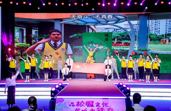 “活力广州”这一篇章中,天河区和白云区等多所学校和黄播 启聪学校以棒球校服秀、活力朗诵、校园剧场、手语歌曲等多种形式展示青春动感之美,蓬勃向上的朝气也充分体现在校服设计上。